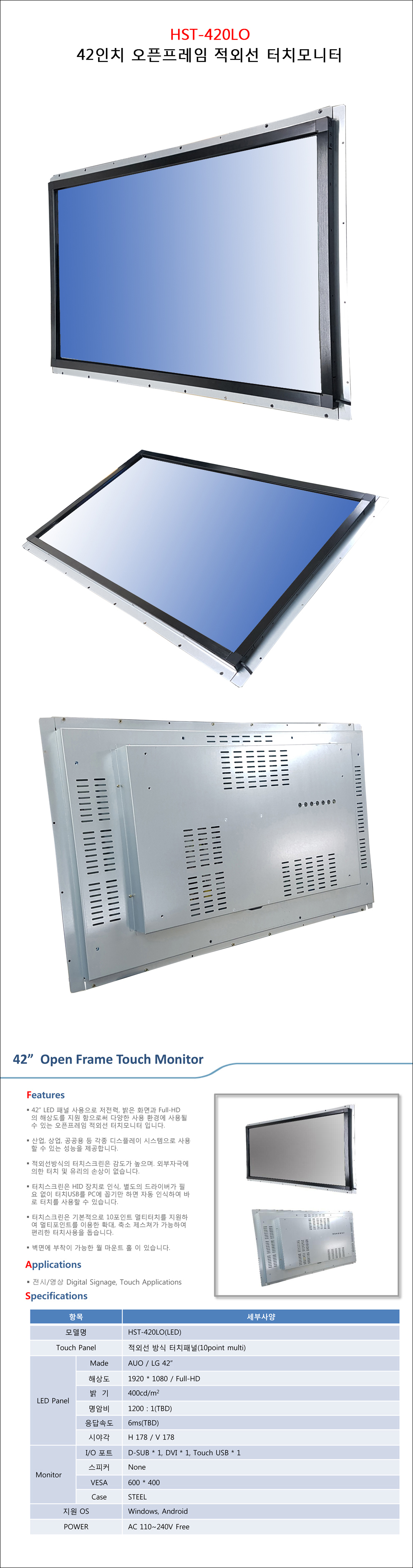 HST-420LO / 42"오픈프레임 터치모니터